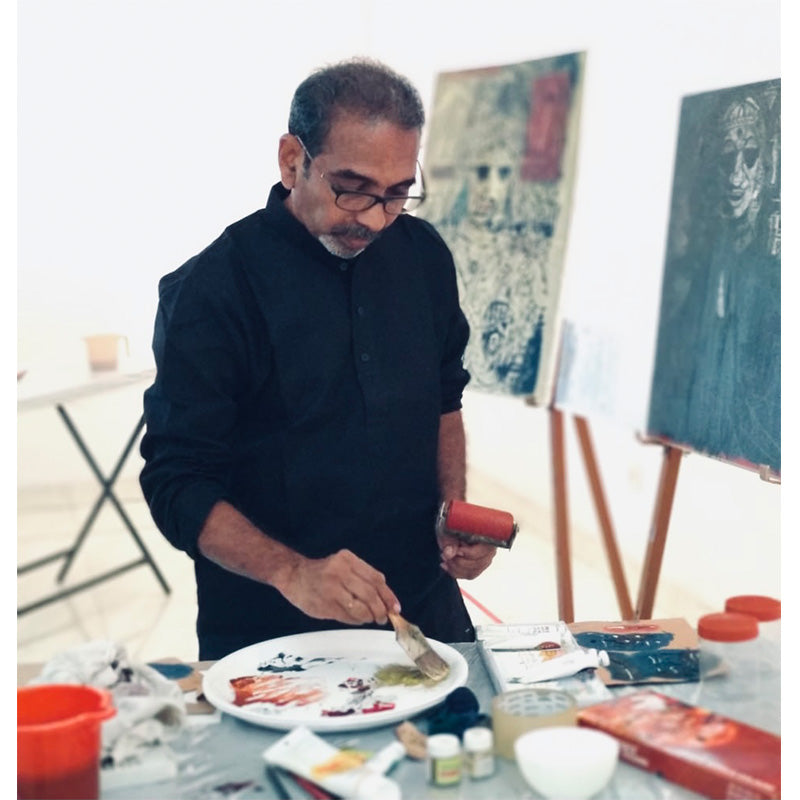 A. Rajeshwara Rao's paintings are about transition. Through his work, the artist reminds us the quaint and humour the incredible influence popular media has on our culture. Rao depicts simple, everyday people and their many ambitions; he illustrates the psychological desires of the physical self. His compositions are magnificent, quirky and meticulous. The artist's vibrant palette shares a strong dynamic through his intricate weave of lines and forms that it brings to life. Rao draws his observations of people and their stories, recording his experiences with photographic precision; however, he ultimately chooses to depict them in a strange and unbelievable way. Even though the artist has serious concerns about these issues, his representations of them are witty, dramatic and full of humor. His multi-faceted compositions instantly remind the viewer of their own dreams and fantasies.