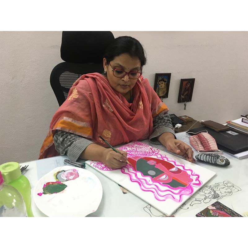 Priti Samyukta was born in 1977 in Hyderabad, Andhra Pradesh and was awarded an MFA in Painting by The University of Hyderabad in 2001. Between 1999 and 2010 she took part in several art camps and worked as a freelance book illustrator. She is currently Head of Department of Painting at Jawaharlal Nehru College of Architecture and Fine Arts University, Hyderabad.